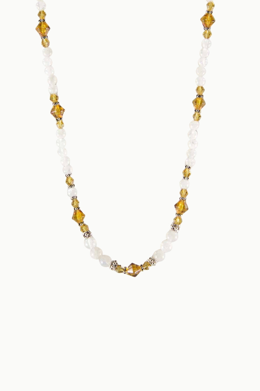 Known as the stone of Goddess Energy, Moonstone harmonizes the chakras and aids in empowering the Divine Feminine that lies dormant within each of us. It is also referred to as the prism stone because it encompasses the entire rainbow within itself, carrying the energy of all seven rays of prismatic light. Radiating with vitality, joy, and life force, Moonstone heals the emotional body and assists in maintaining optimism, enabling one to see the light during dark and challenging times.